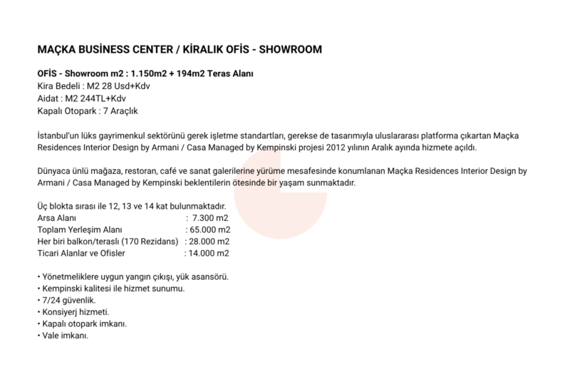 📍 MAÇKA BUSINESS CENTER: 1.150 M² KİRALIK VİZYON